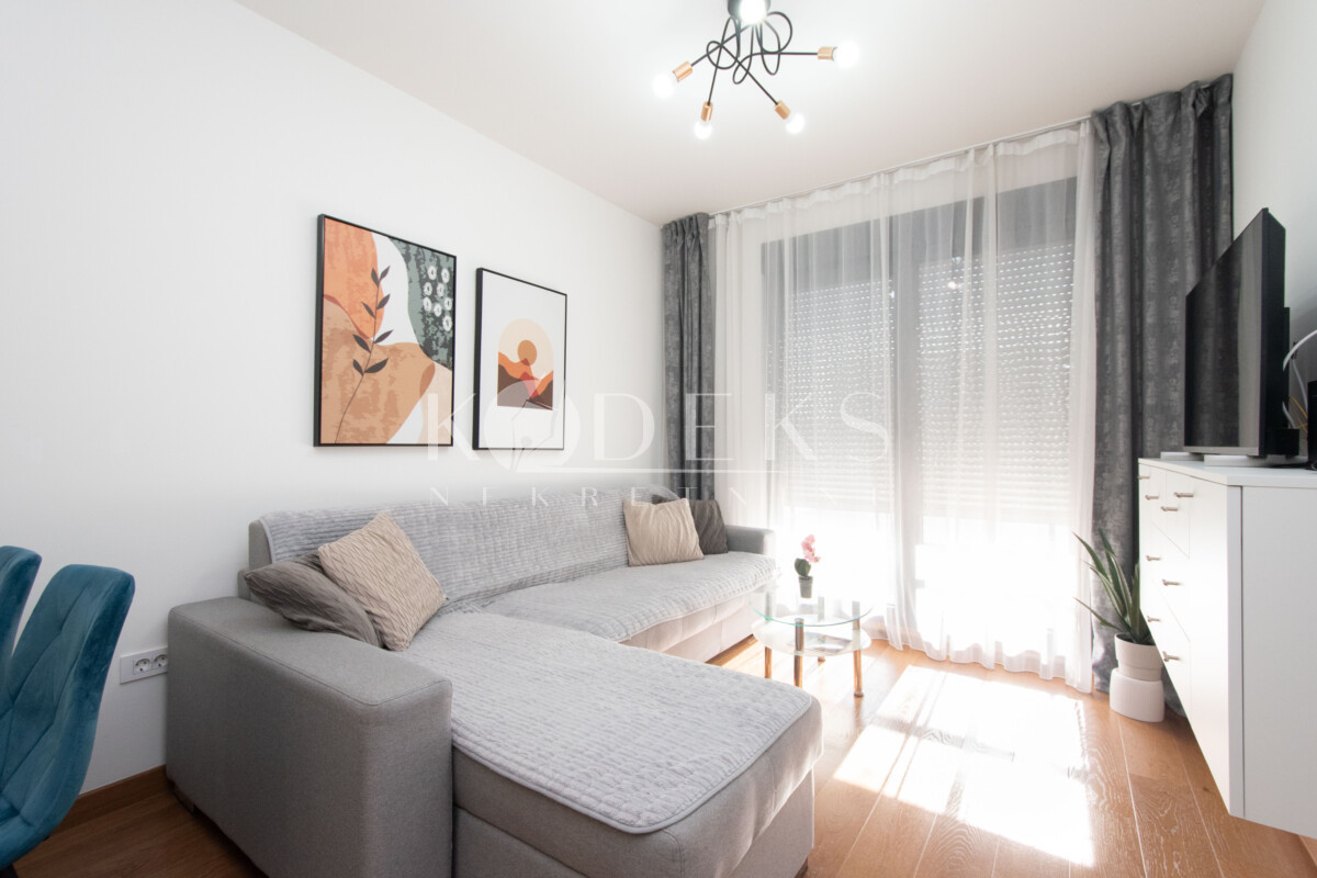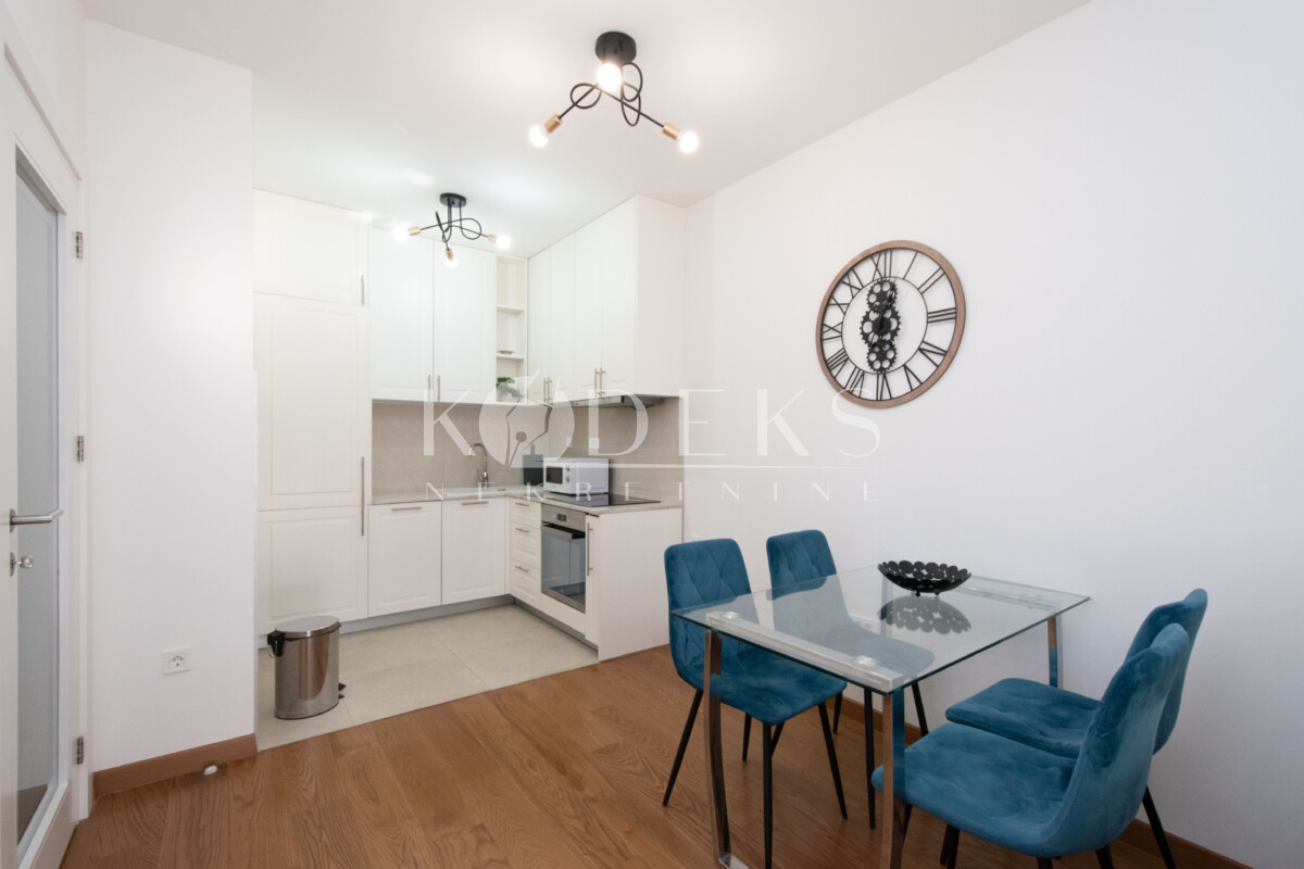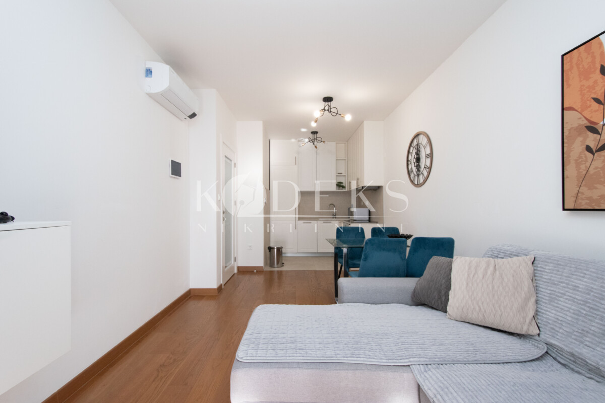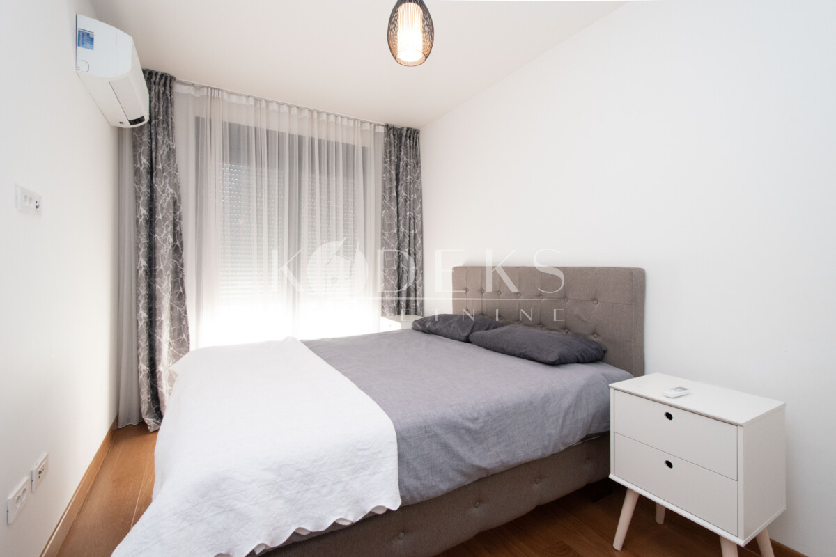 Nalazi se u prestižnoj zgradi poznatoj po smart home sistemu pomoću kojeg možete kontrolisati rasvjetu, roletne, klimatizaciju, pa čak i isključiti i uključiti dotok vode u stanu samo jednim klikom na panel ili na telefonu.