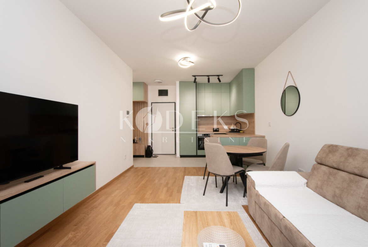 Izdaje se lijepo namješten jednosoban stan smješten na trećem spratu zgrade Bemax na Starom aerodromu.