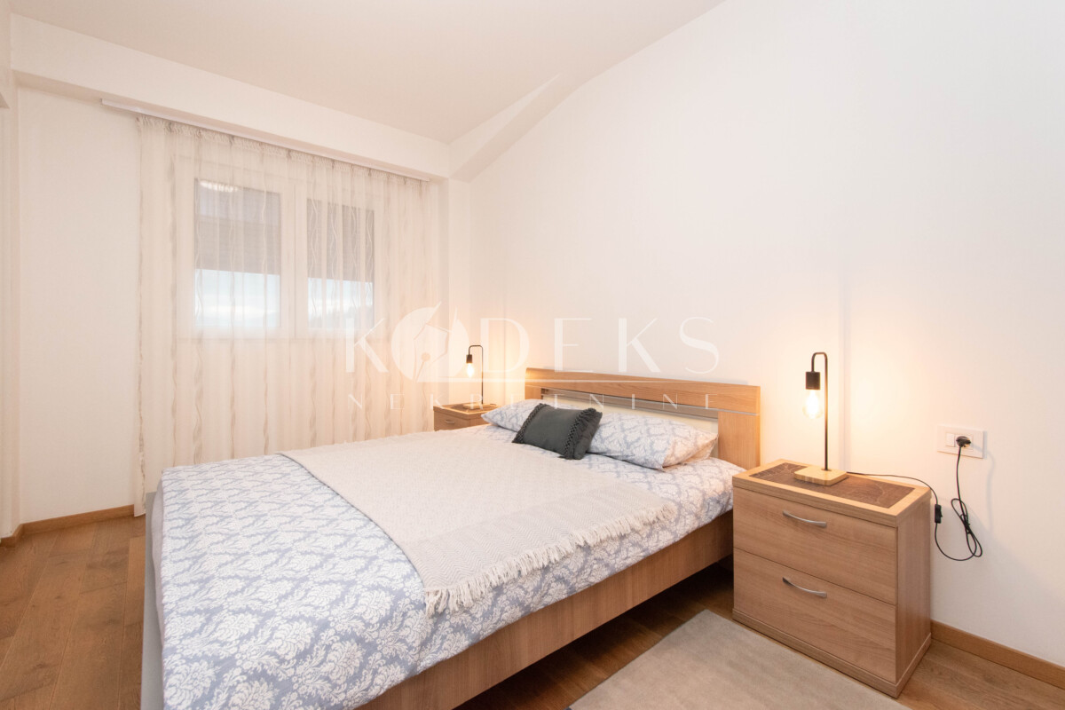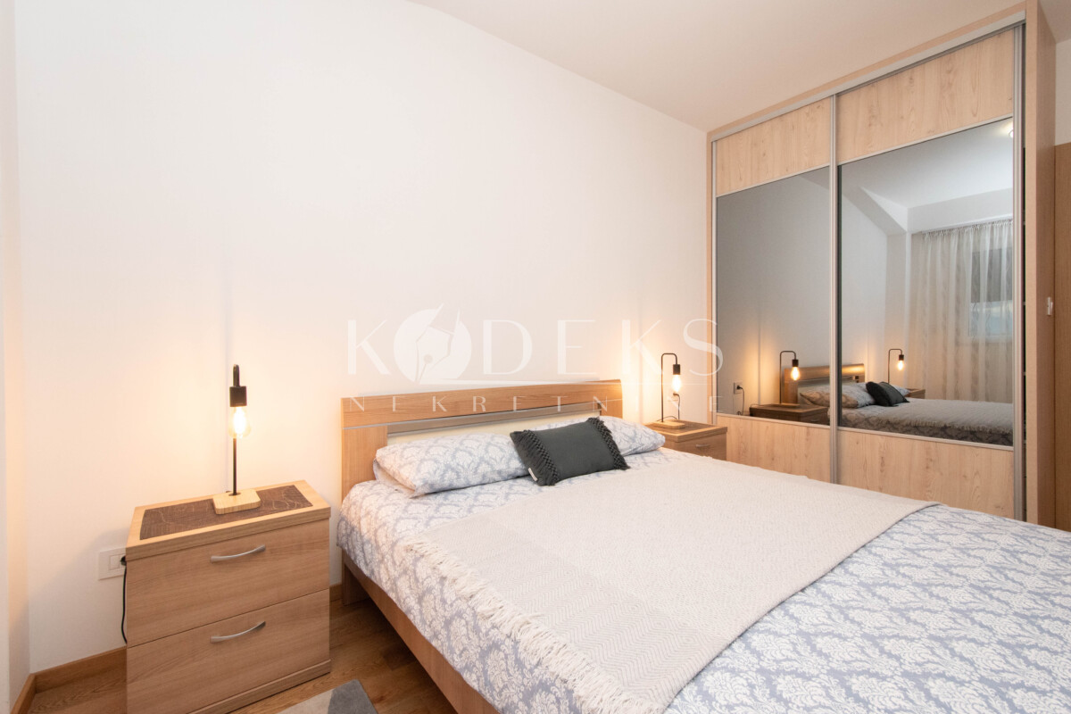 Izdaje se lijepo namješten jednosoban stan smješten na šestom spratu (posljednjem) zgrade Razvršja na Pobrežju.