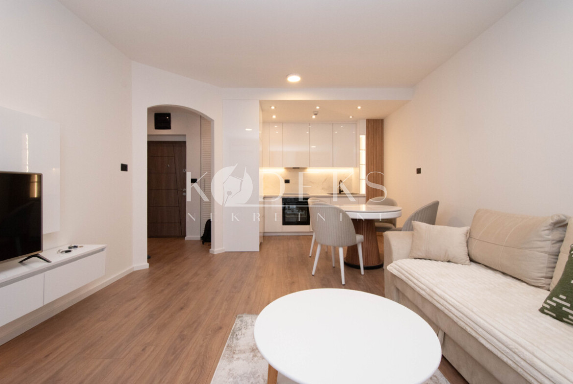 Struktura: Dnevna soba koja je povezana sa trpezarijom i kuhinjom i ima izlaz na veoma komfornu terasu, spavaća soba koja takođe ima izlaz na terasu sa ostavom, ulazni hodnik i kupatilo.
