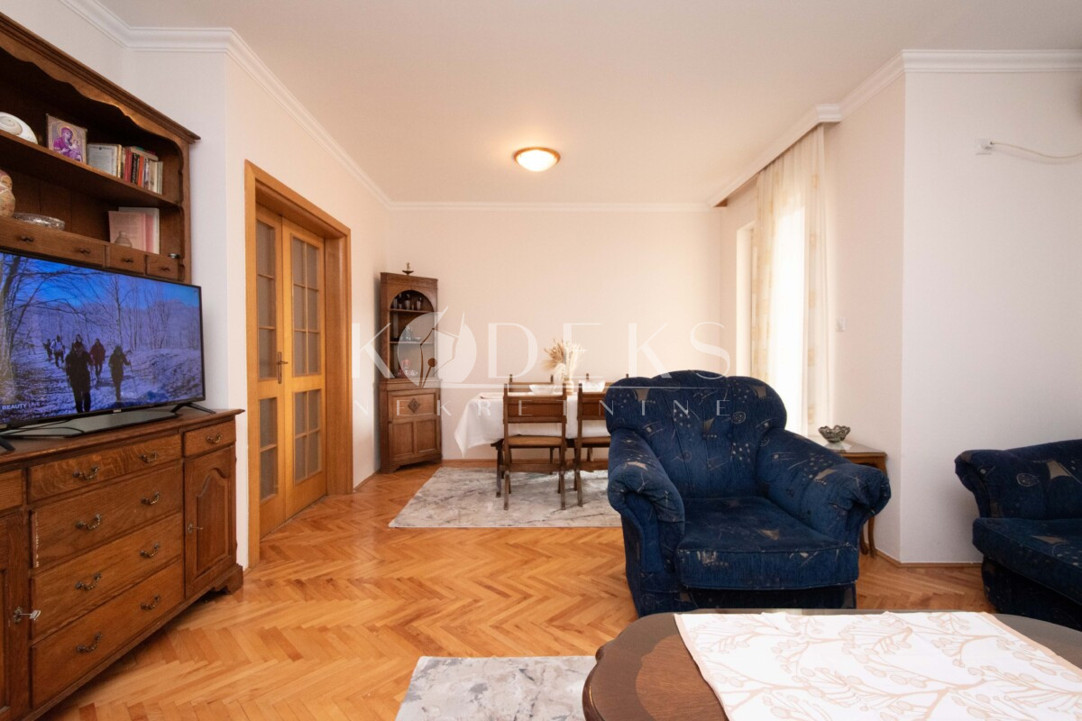 Struktura: Dnevna soba koja ima izlaz na terasu, trpezarija otvorenog tipa, odvojena kuhinja, spavaća soba, ulazni hodnik i kupatilo.