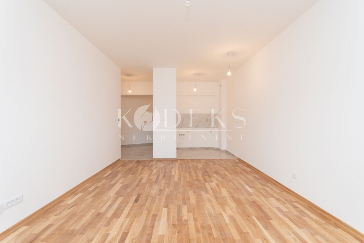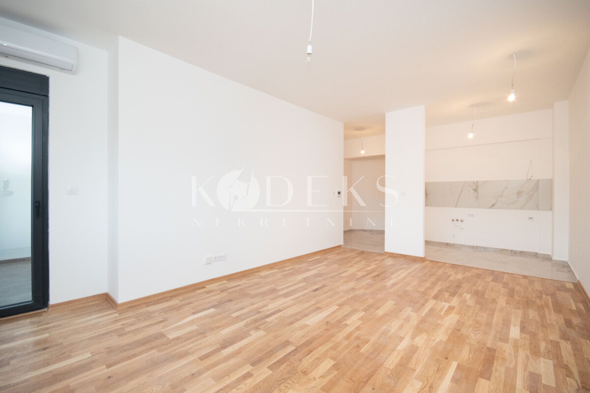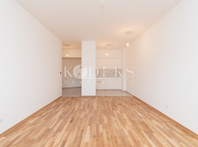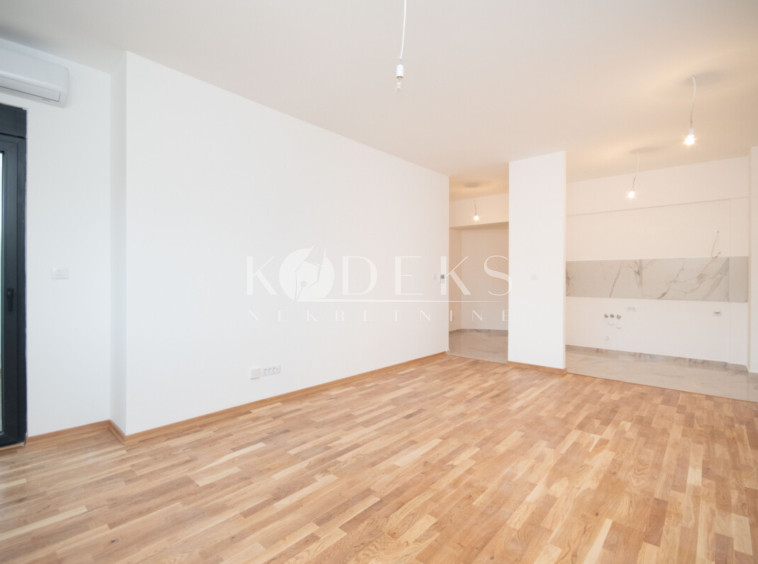 Struktura: Dnevna soba koja je povezana sa kuhinjom i trpezarijom i ima izlaz na terasu, spavaća soba koja takođe ima izlaz na terasu, ulazni hodnik i kupatilo.