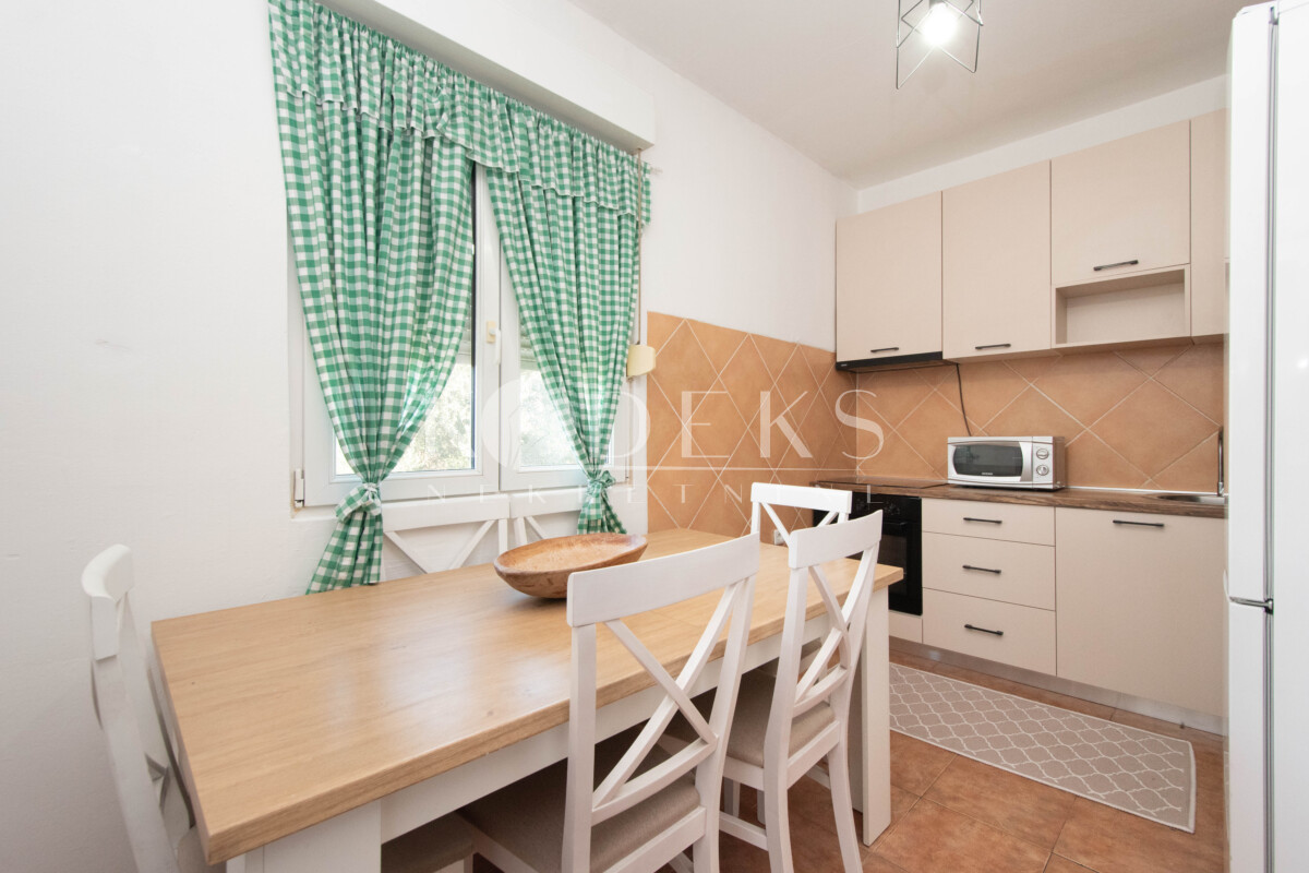 Struktura: Dnevna soba, odvojena trpezarija sa kuhinjom iz koje se izlazi na terasu, spavaća soba, ulazni hodnik i kupatilo.