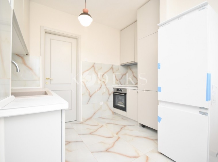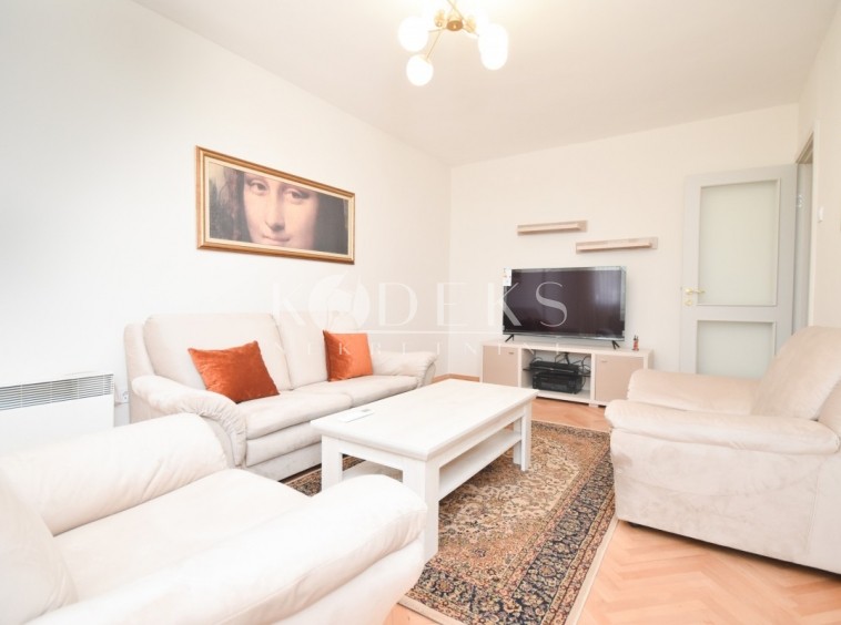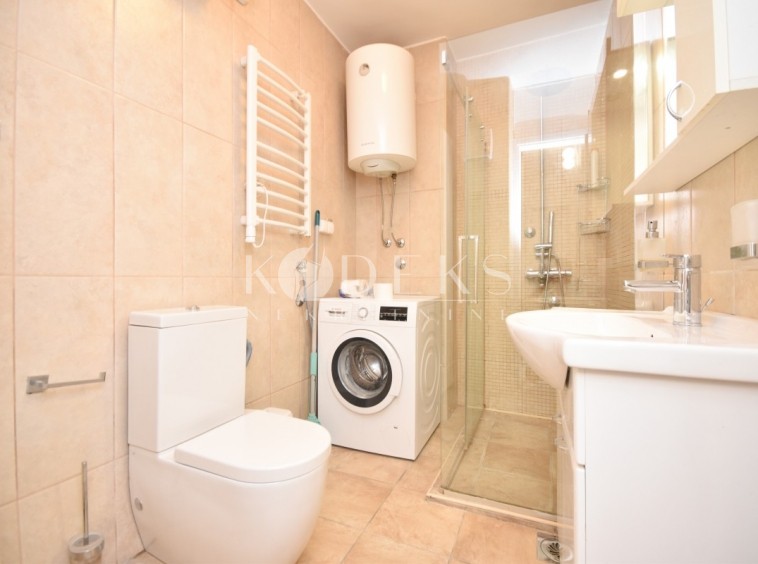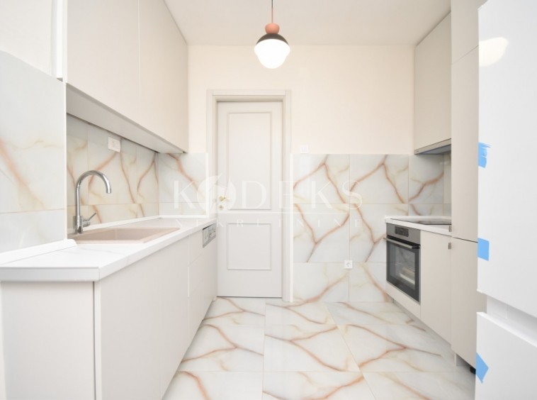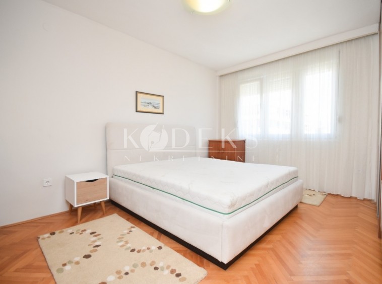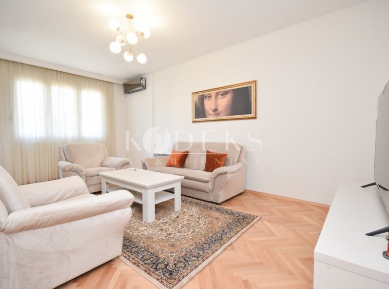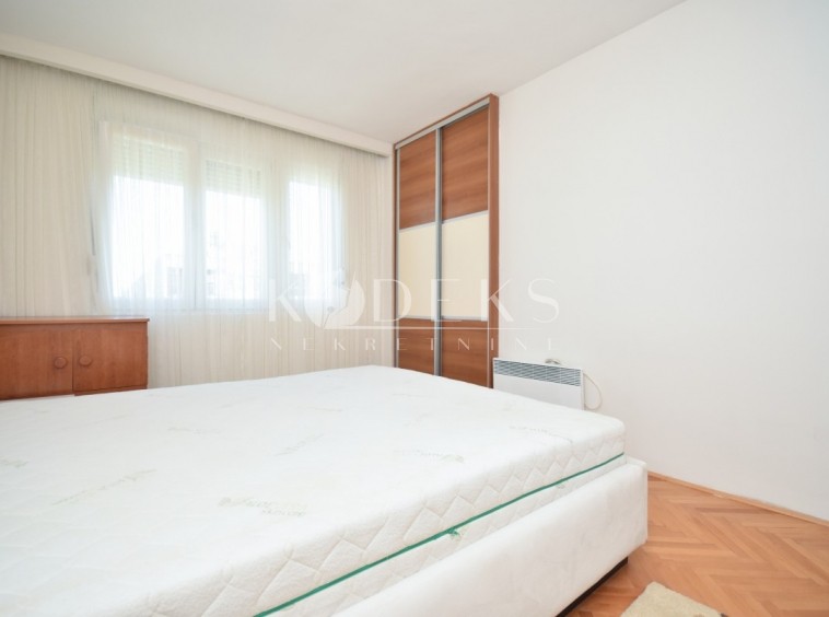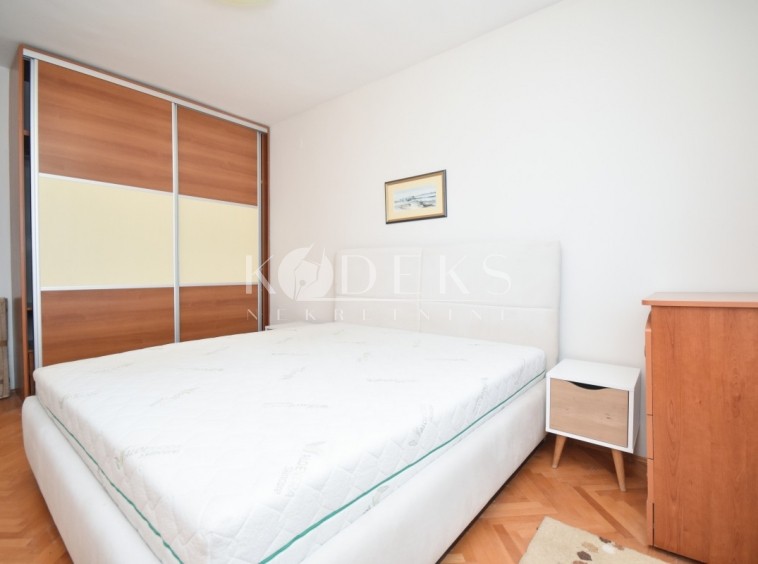 Struktura: Dnevna soba koja ima izlaz na terasu, odvojena kuhinja sa tršezarijom, spavaća soba, ulazni hodnik, ostava i kupatilo. Uz stan bi zakupac dobio na koršćenje i podrum od 10m2.