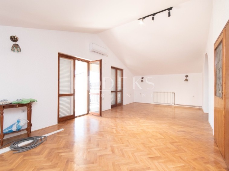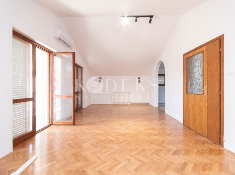 Struktura: U prizemlju se nalazi dnevna soba sa kuhinjom, tri spavaće sobe, ulazni hodnik, kupatilo, mali toalet i ostava. Ista struktura je i na prvom spratu. Spratovi su potpuno odvojeni.
