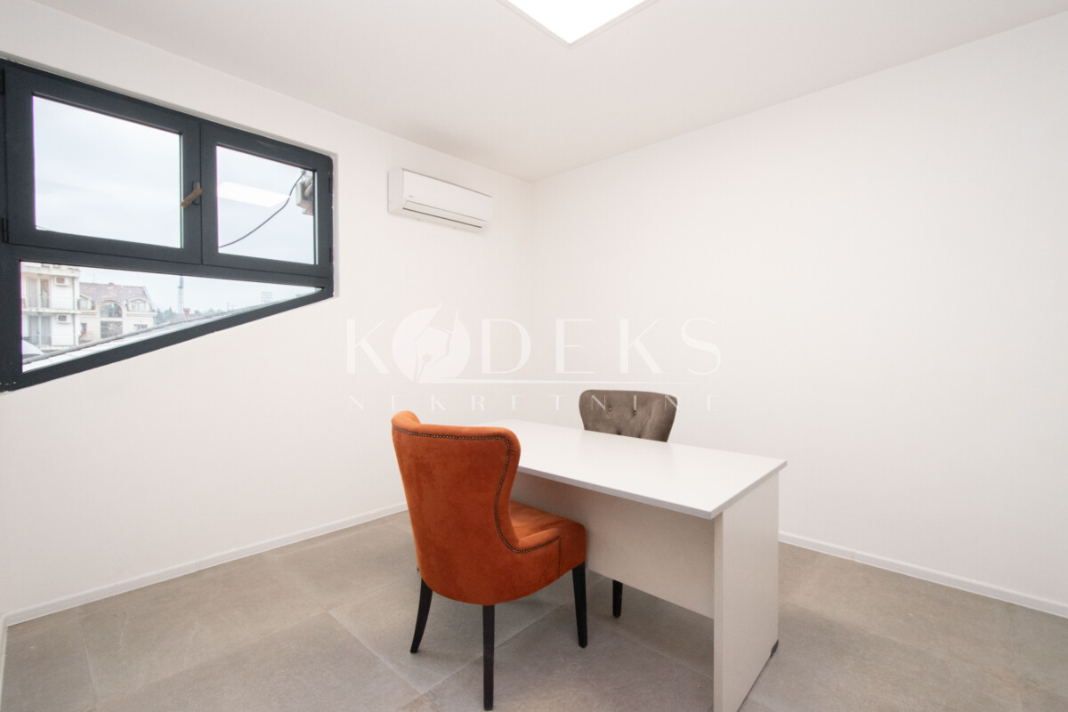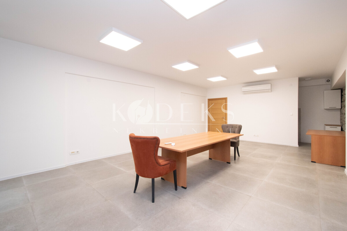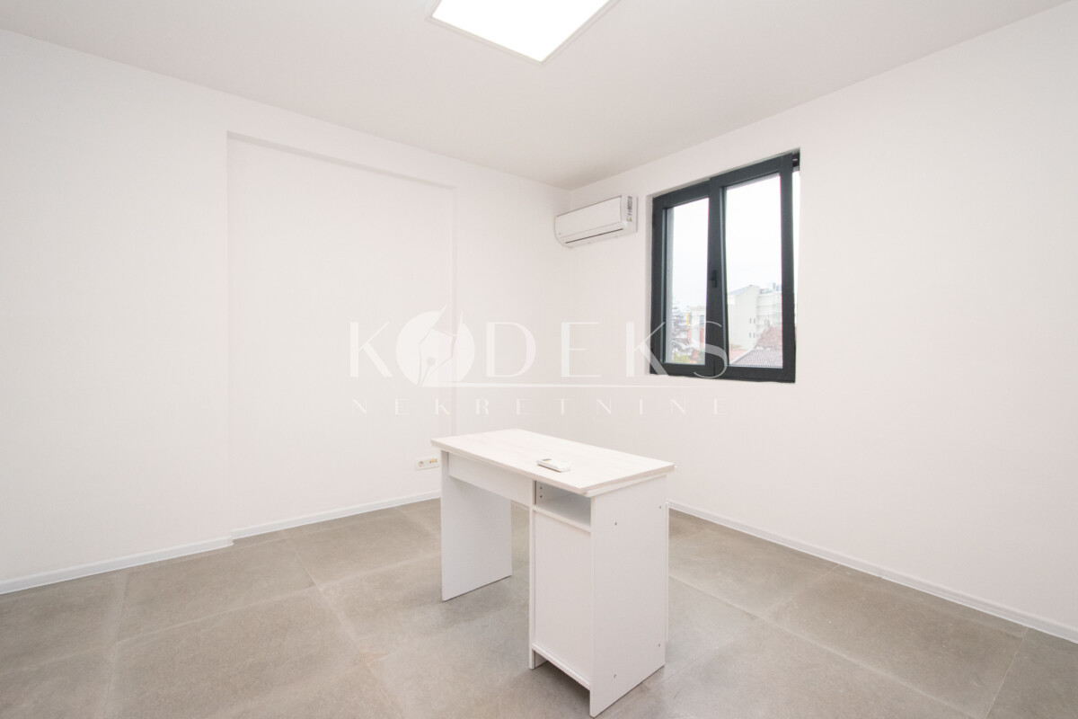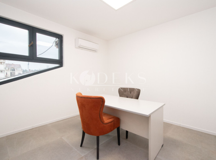 Izdaje se poslovni prostor smješten na drugom spratu stambene zgrade u centru grada.