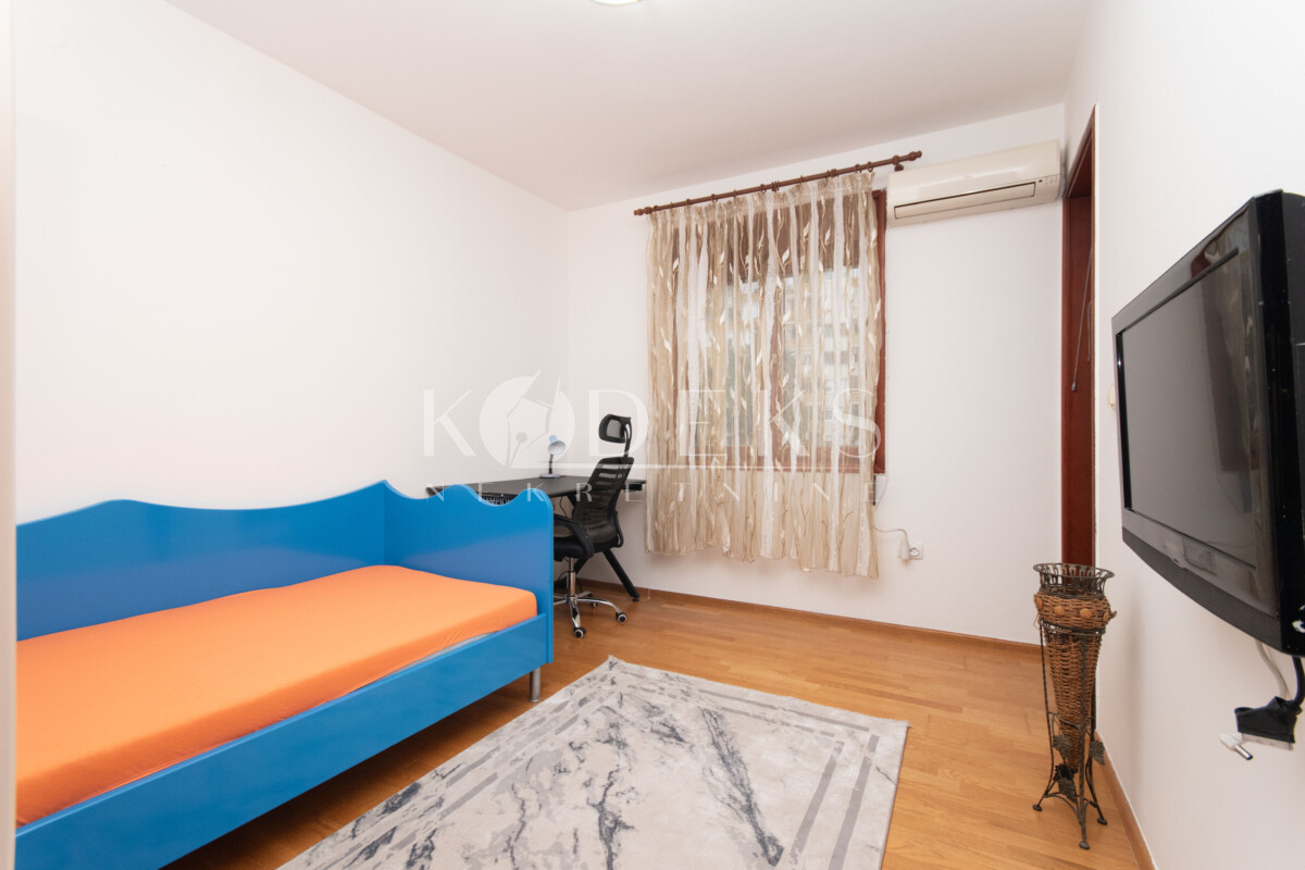 Struktura: Dnevna soba koja ima izlaz na terasu, trpezarija, odvojena kuhinja, tri spavaće sobe od kojih dvije imaju izlaz na terasu, ulazni hodnik, predsoblje i dva kupatila.