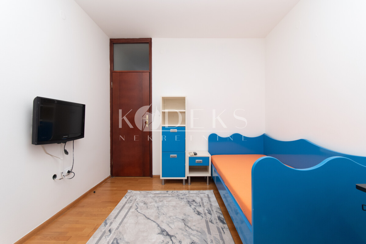 Izdaje se namješten trosoban stan smješten na prvom spratu stambene zgrade Ljuba Zeca na Pobrežju.