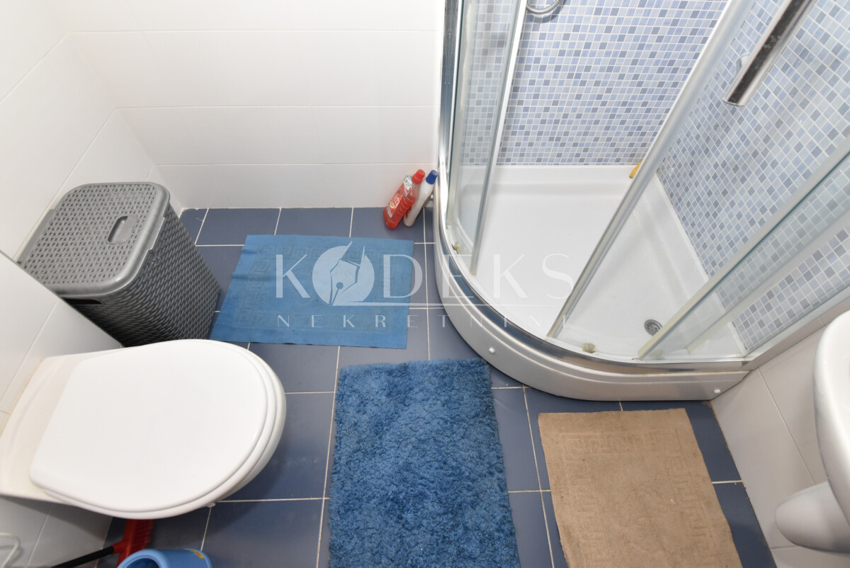 Prodaje se lijepo namješten jednosoban stan smješten na petom spratu (posljednjem) stambene zgrade u Siti kvartu.